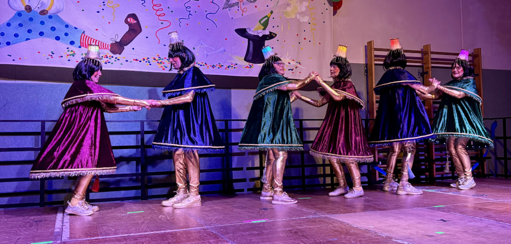 Als „Jugendgruppe des Chors“ angekündigt folgte ein Auftritt der „Baacher Leuchten“. Einer sechsköpfigen Gruppe, die optisch und tänzerisch den Wackelkontakt einer Lampe aus den Siebzigern perfekt inszenierte. Die erste Rakete war fällig, war doch die älteste Tänzerin gerade einundneunzig Jahre alt geworden und lag die Alterssumme bei rund 5oo Jahren.