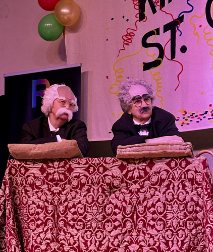 Elf Chorsänger beeindruckten als „Cäcilia Krätzchenssänger“ und motivierten das Publikum zum Schunkeln und Mitsingen. Der a capella vielstimmig vorgetragene Hit „Stääne“ sorgte für den emotionalen Gänsehaut Moment der Sitzung. Ein krasser Kontrast folgte mit dem wilden Auftritt der Muppets, die die Bühne kaperten und ihre Show mit Koch, Kermit, Hühnern und Miss Piggy aufführten. Natürlich fehlten zur Freude des Publikums auch die beiden Mecker- Oldies Waldorf und Statler nicht. Als Gäste komplettierten Ernie und Bert die furiose Show.